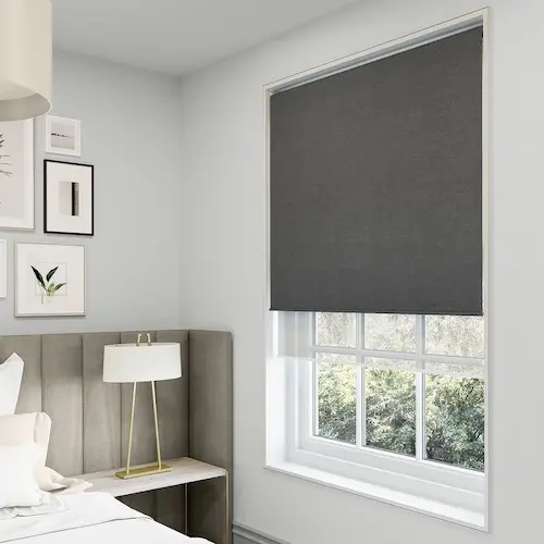 Our roller blinds cover the glass in one smooth pull with no gaps and no peeking through. It’s good for rooms where you don’t want outside eyes.